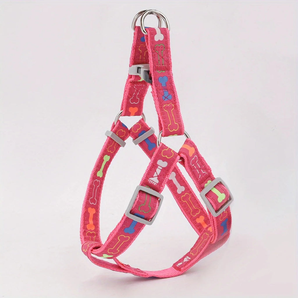 Peitoral Ajustável para Cachorro Estampa Ossinhos Coloridos