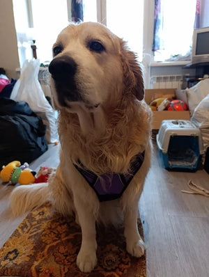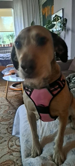 Boa adaptação, ajuste simples, porém a fivela poderia ser um pouco mais robusta para cachorros maiores.