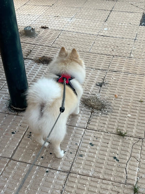 Design simples e fácil de colocar, ótimo para quem tem pouco tempo de manhã e precisa sair rápido com o pet.